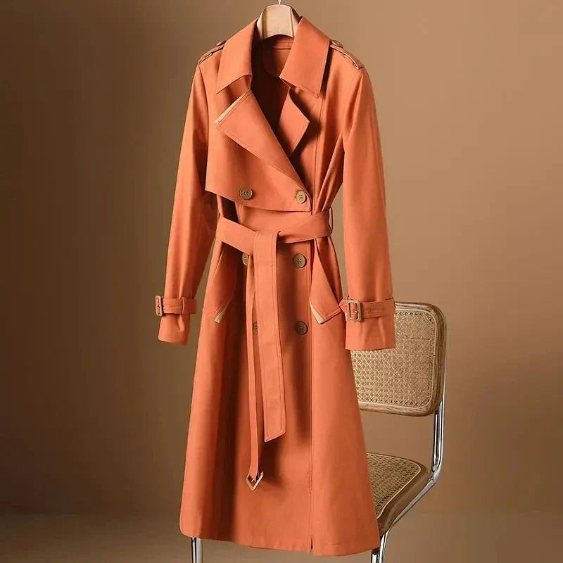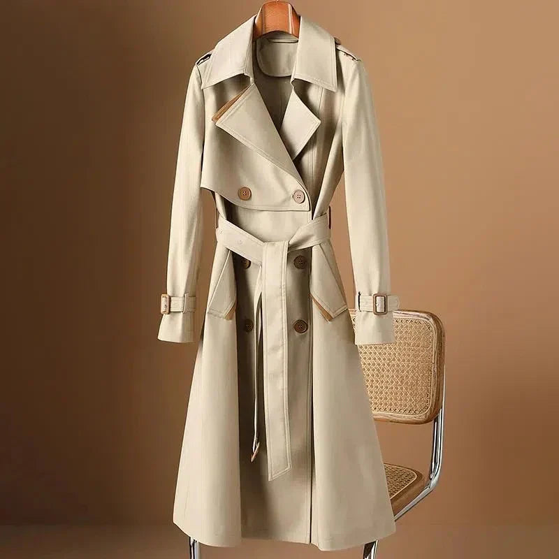 Elevate your outerwear with this refined double-breasted windbreaker, crafted for comfort, structure, and year-round versatility. The tailored silhouette offers a graceful shape without restriction, while the breathable fabric blend ensures comfort during cooler days. Whether layered over everyday wear or styled for evening outings, this long coat brings effortless elegance to any occasion.